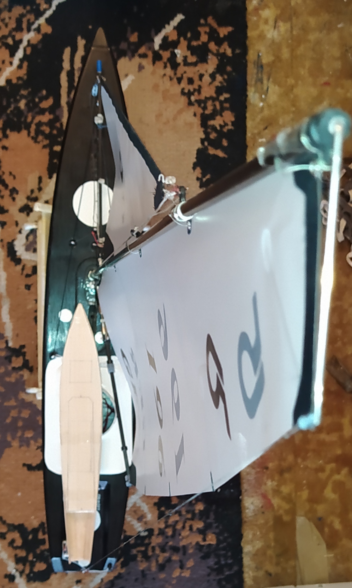 Auf dem Mastkontroller ein Brettchen fixieren u. mit 2 Schräubchen befestigen, dann die Foil's wie bei den AMERICA'S CUPPER befestigen. Sie werden starr bleiben.(Nicht beweglich).