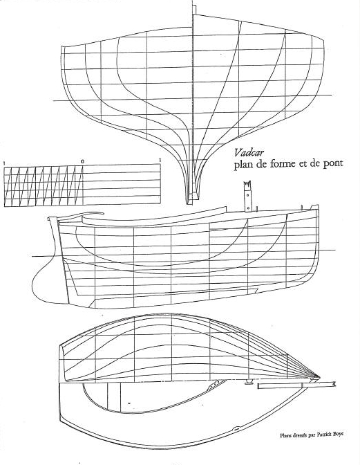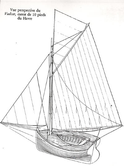 Nach meinen ersten RG65-Versuchen, komme auch aus der scale-Ecke, hatten wir den Eindruck, dass diese Boote nicht viel besser segeln (zumindest meine Modelle, obschon ich auf das Gebaute recht stolz bin) als vorbildgetreue Segelschiffe. Also wurde ein Versuch gestartet. Aud der Suche nach einem geeigneten Vorbild sind wir auf die"Vadcar" aus der 10-pieds (10 Fuss) Klasse aus Le Havre (F) gestossen. Im Mst. 1:5 entspricht die Länge praktisch einer RG65.