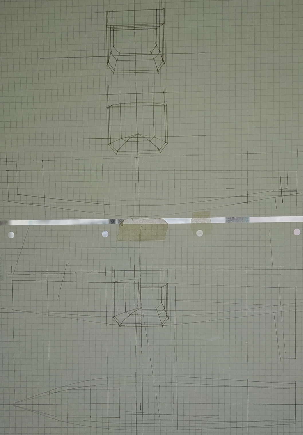 Linienriss. Der Leuchttisch ist das Wohnzimmerfenster bei Tageslicht.