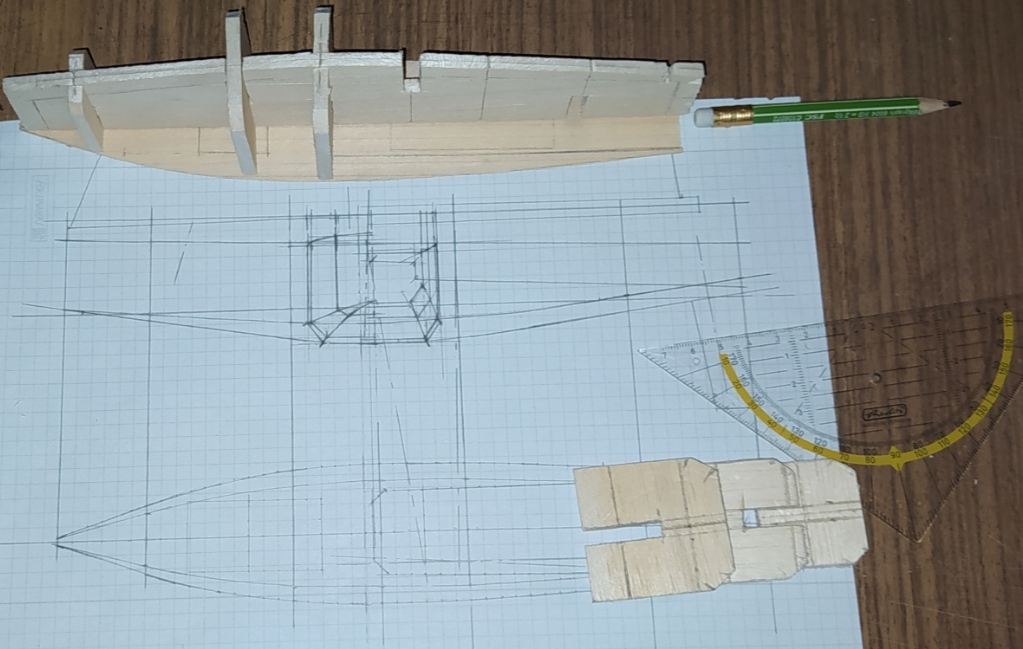 Zeichnung für die Mallen, die später entfernt werden, wenn das Böötchen fertig geplankt ist.
