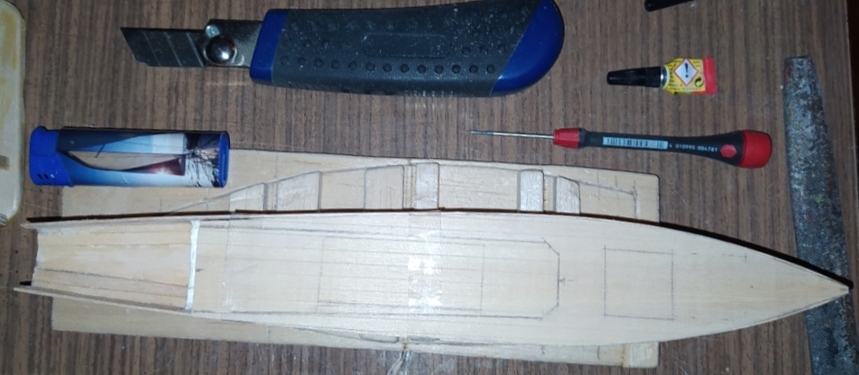 Deck u. Cockpit sind aus 1mm Limbaholz.