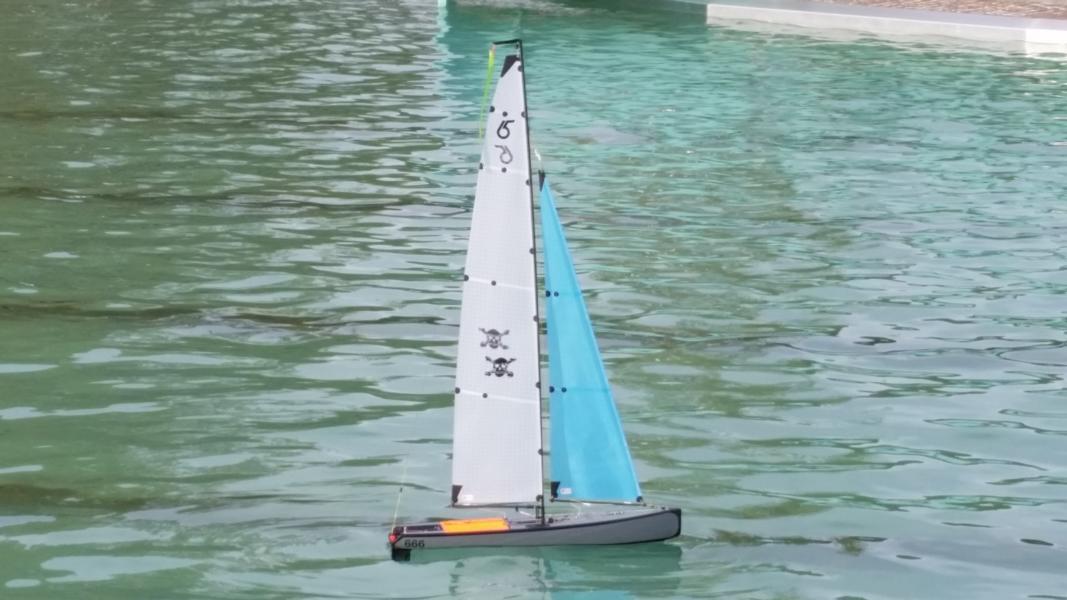 Die schwarze ist das Originalboot mit grauen Abklebeset von Soch sails für den ganzen Rumpf und Deck.