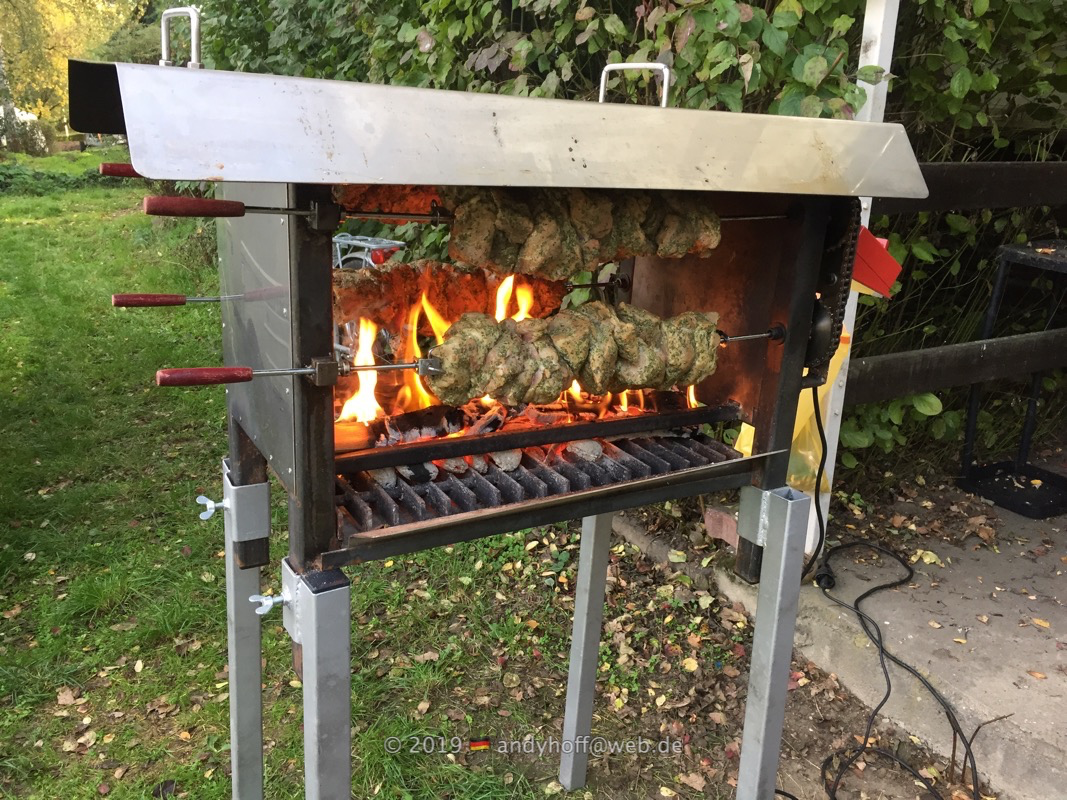 Samstag Abend war der Grill schon in Betrieb und es dreht sich 4 Spieße Mutzbraten. Das war ein absolutes kulinarisches Highlight. Ich habe schon einige male einen Mutzbraten gegessen .. aber der war wirklich absolute Spitze.