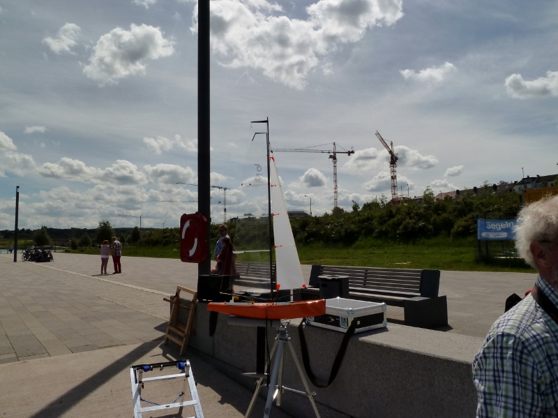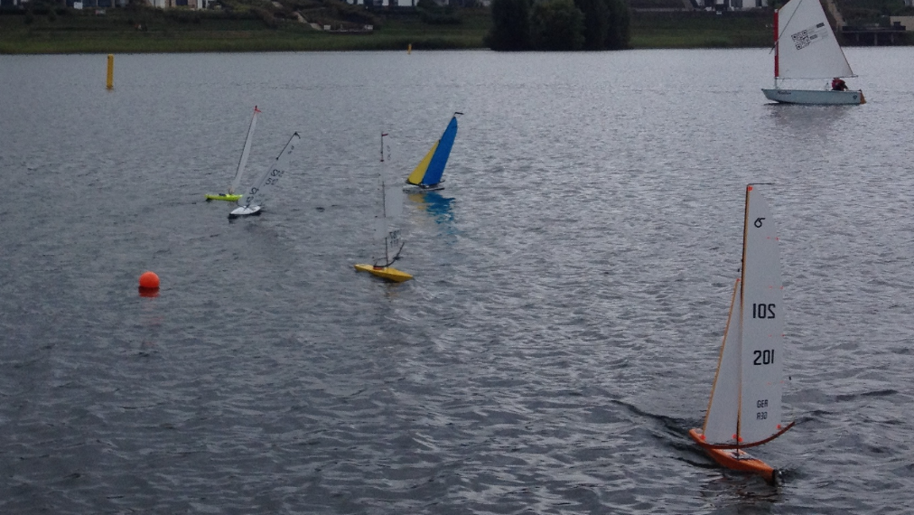 fertig auf dem Wasser, Hans- Jürgen trotz aller Umstände seine RG-65 dabei und Matthias seine bewährte #hashtag ... und dann hatte heute sogar Peter seine Bojen ausgelegt und Matthias seine neue Startmaschiene für die Regatta am 26.10. zum Testlauf mitgebracht ... also war es mal wieder ein klasse Segeltag bis auf den Moment wo in einer Böe Matthias mit seinem Fockbaum die reißfestigkeit von Gittermylar meines A- Riggs testete.