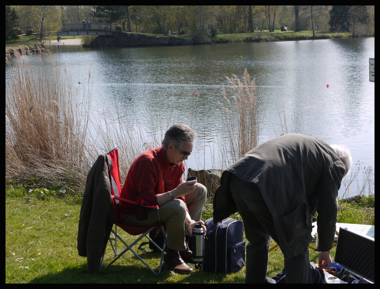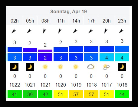 Des Wetter war sonnig und von den Temperaturen her für April angenehm. Der Wind kam ..., äh aus Süd über Ost bis Nord, oder eben aus der anderen Richtung. Windstärke meistens eine schwache 1. Während der Läufe konnte der Wind schon mal komplett die Runde machen. Trotzdem konnte nicht von einer Windlotterie gesprochen werden. Die Bedingungen waren zumeist für alle irgendwie dann doch gleich und das Feld kämpfte gemeinsam gegen die Unbilden.