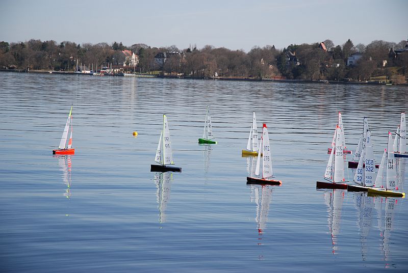 Ausfälle gab es auch. Heiko ist sein Segelservo noch vor dem ersten Start abgeraucht, Andreas E. ist nach dem halben Tag das Ruderservo abgebrannt und Kristian brach zu guter letzt die Großschot. Andreas K. gab frühzeig auf, weil seine Eingenkonstruktion auf Basis der Palo bei dem wenigen WInd gar nicht vom Fleck kam.