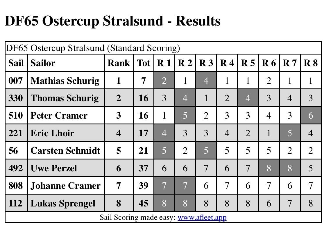 über 17 Wettfahrten -> 4 Streicher.