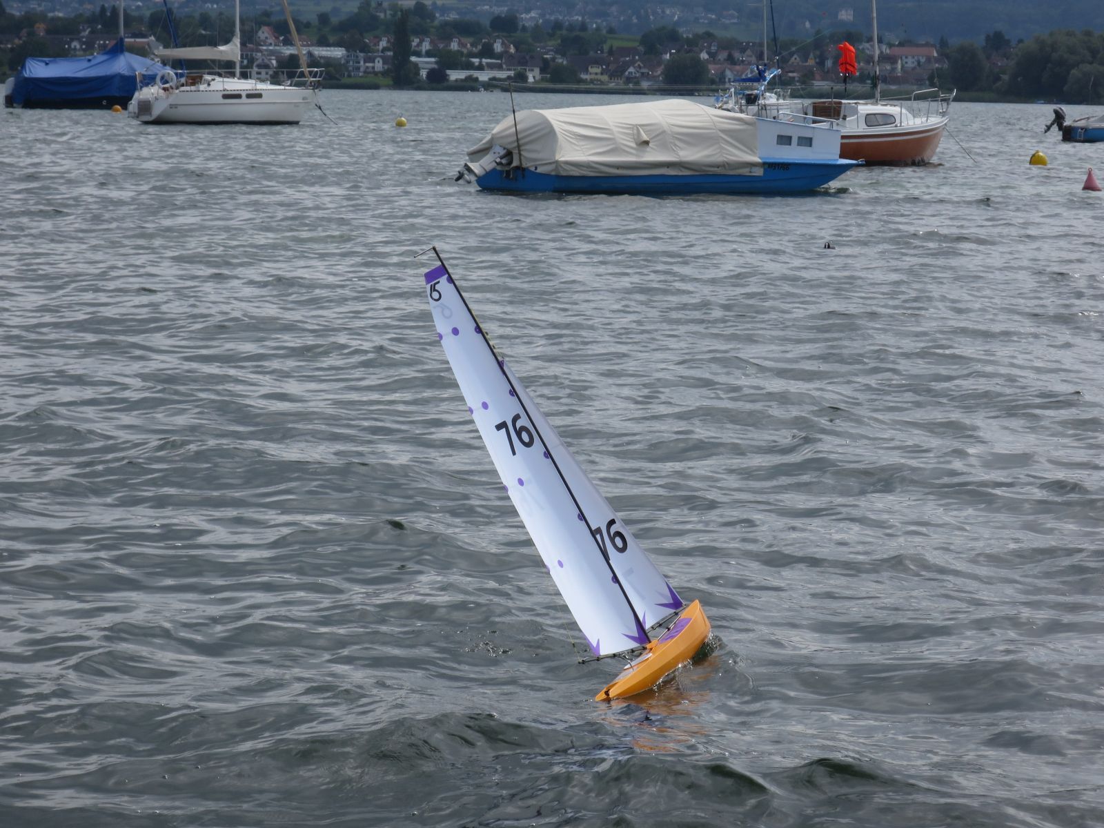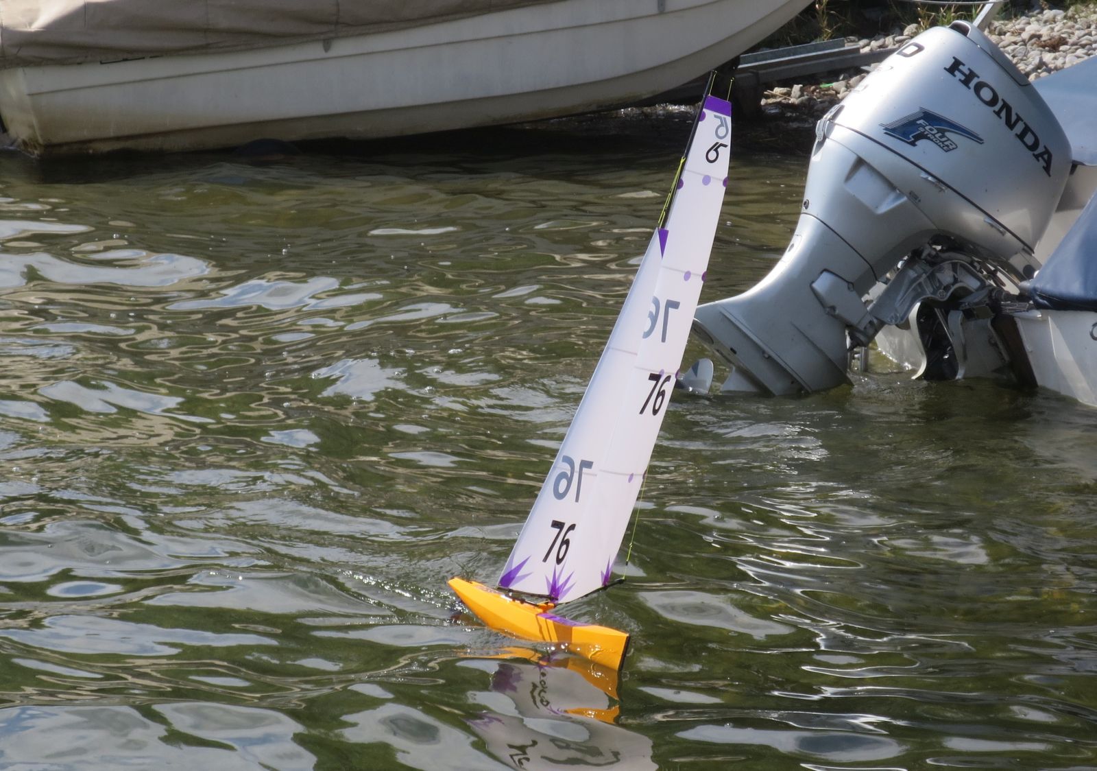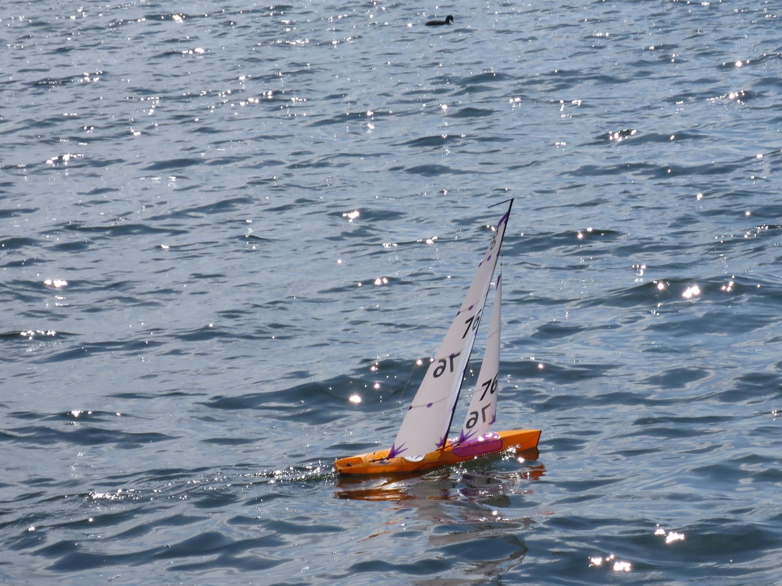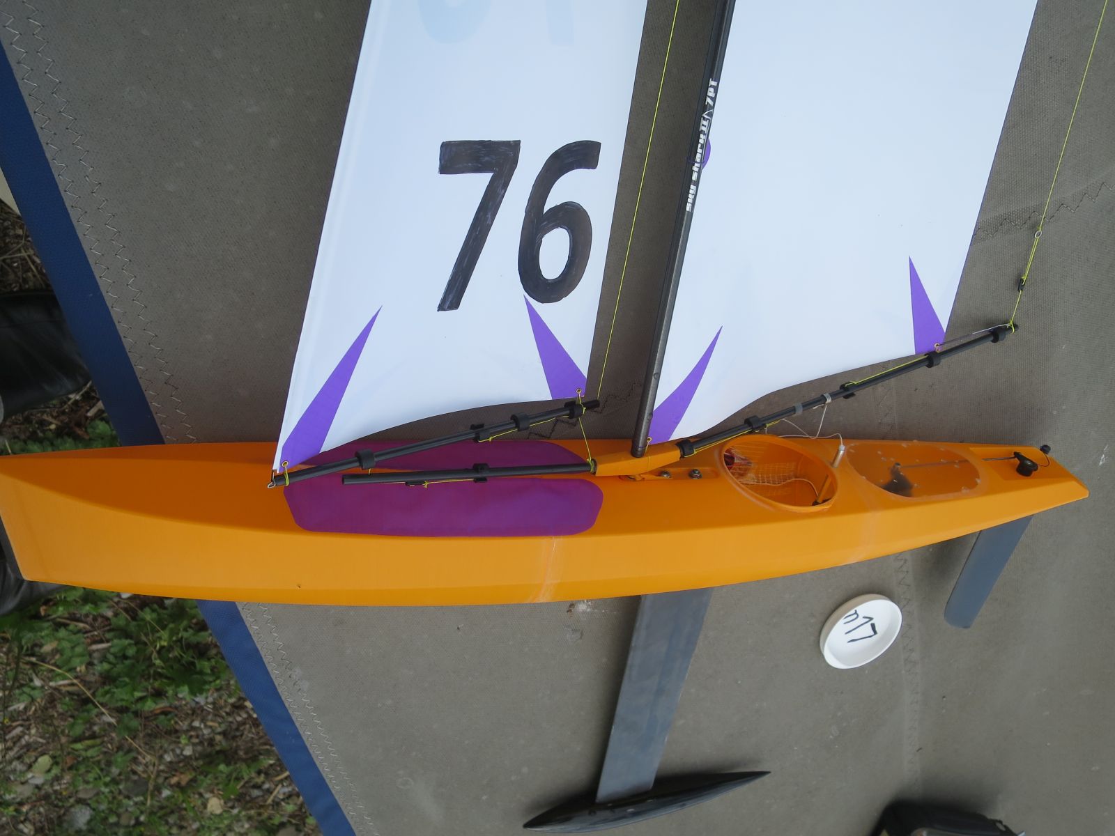 wie ihr gesehen habt, meine zweite m17 hatte heute Jungfernfahrt. Der verregnete Vormittag war genau richtig für die letzten Arbeiten am Rigg und das Zukleben der Decksöffnungen. Und Dichtigkeitstest. Nachmittags klarte es auf, also ab an den See. Guter Wind, ordentlicher Seegang, die typischen kurzen Kabbelwellen am Gnadensee. Hatte etwas Bammel da dies mein erstes Swingrigg ist, war aber unbegründet, swingt einwandfrei und das Boot läuft sehr stabil. Ich musste allerdings den Mast ganz nach vorne neigen und den Segeltrimm ändern um die Luvgierigkeit wegzubekommen. Wobei an ein genaues Austrimmen bei der Kabbelei eh nicht zu denken war. Also genießen, hart am Wind durch die Wellen und raumschots zurücksurfen
