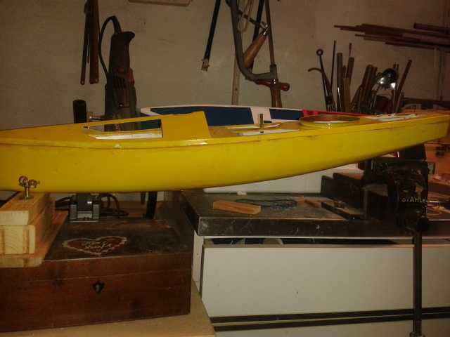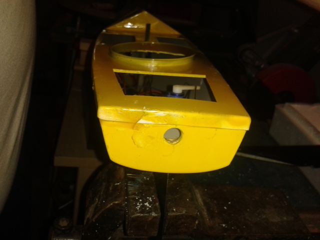 Ich habe eine Delle im Rumpf entdeckt. Diese muss ich noch Spachteln. Irgendwo in der Werkstatt habe ich noch Plastikspachtel gefunden. Dieses werde ich allerdings erst versuchen, wenn der Rumpf komplett getrocknet ist. Vielleicht sieht man es ja auf dem einen Bild?.