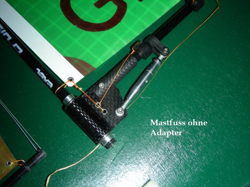 das mit dem 4mm Kohlerohr funzt bei mir wunderbar. Nur dass ich einen Adapter aus 6mm und 4mm Kohlefaserrohr in die Masttasche stelle. Und das Rigg dann oben drauf. Beim Transport stört dann bei mir der Stummel nicht, der aus der Masttasche sonst rausragt. Damit muss er nun aber mal leben, da der Mast fest eingeklebt ist.
