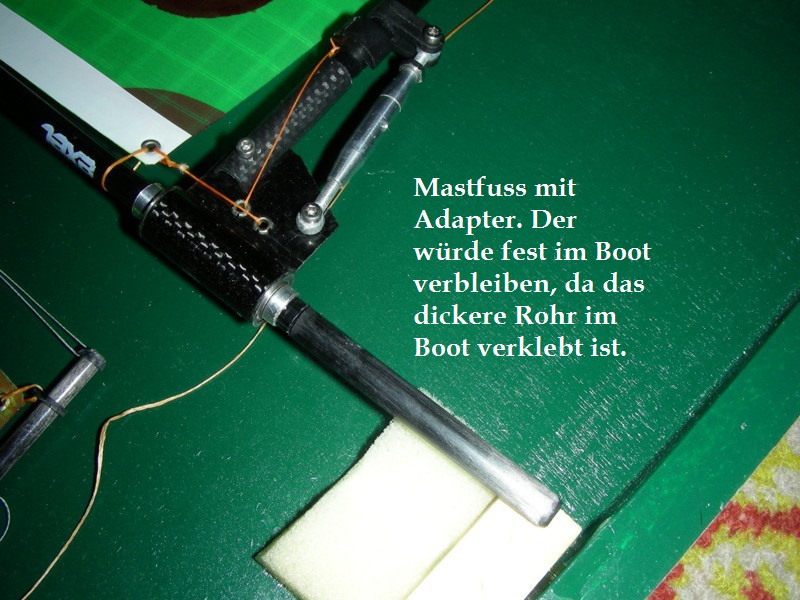 be meinem, gebraucht gekauften, Boot ist der Mast (6mm Kohlerohr) leider fest verklebt.