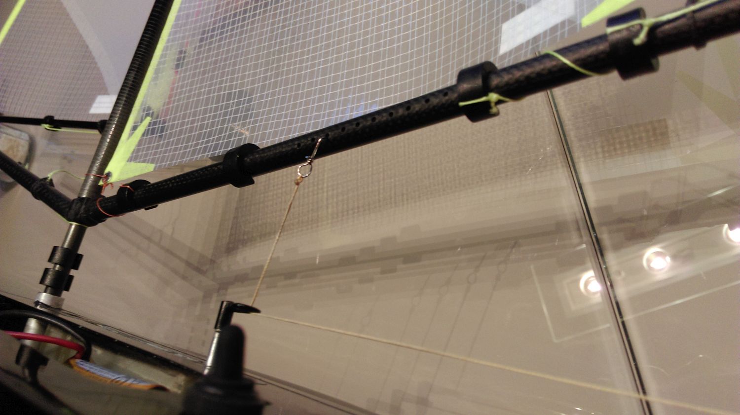Nun war es so, das beim alten Rigg die Schot aus dem Rumpf herausgeführt wurde, über einen Klemmwinkel dann die Schot parallel unter dem Großbaum verlief, bis sie dann mittels eines Federstahlhaken in einer Bohrung am Groß eingesteckt wurde. Es war ein Klemmwinkel für 6 mm Rohr.