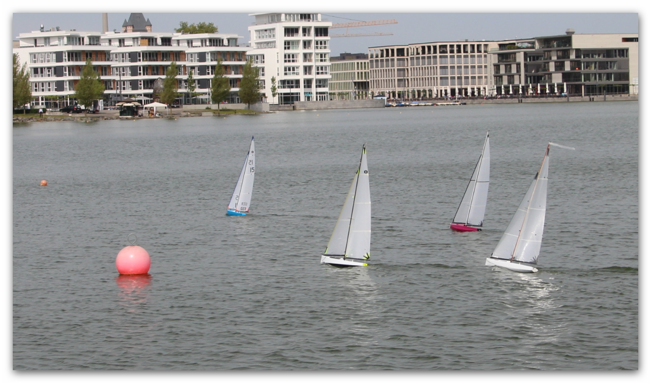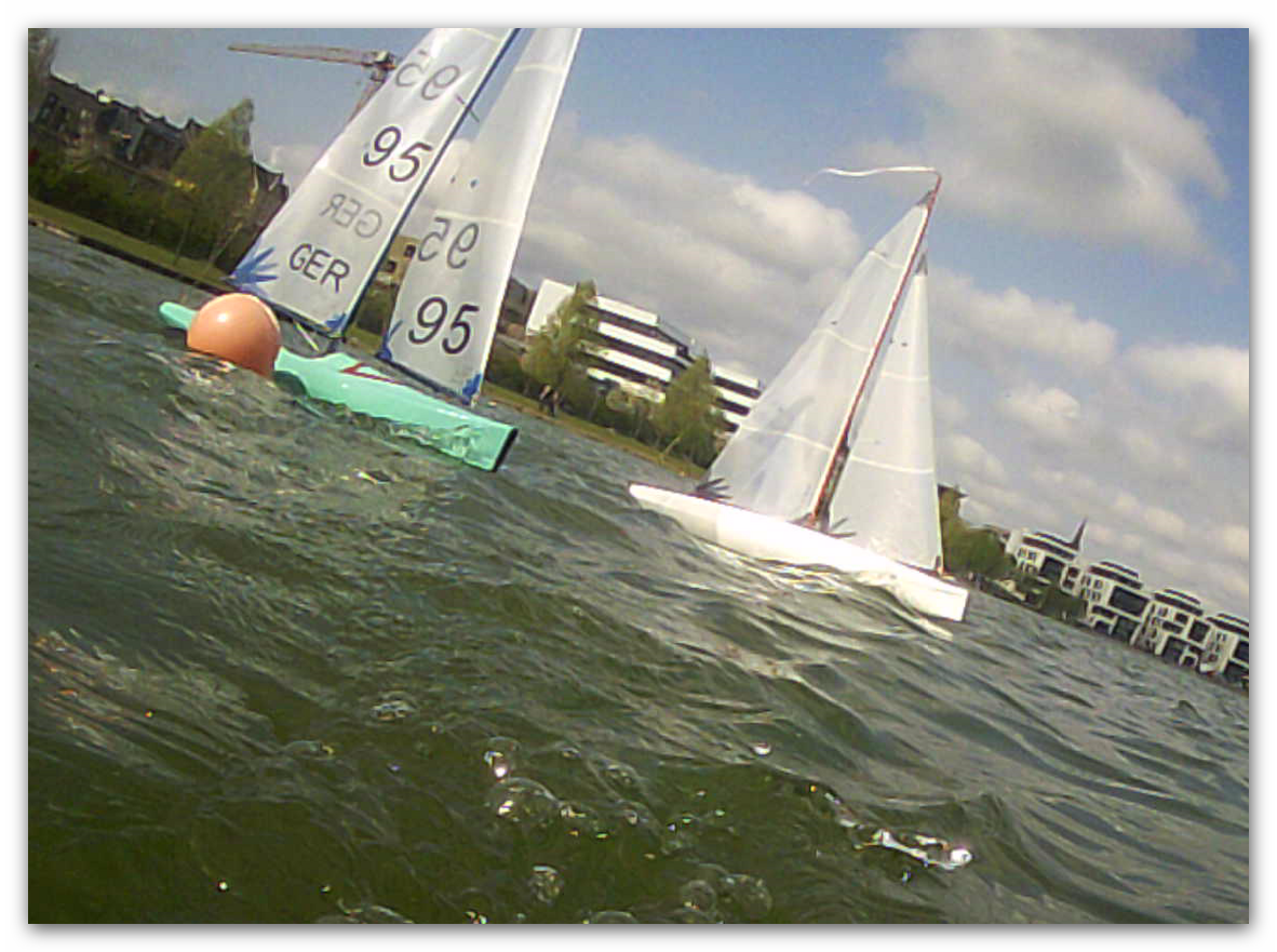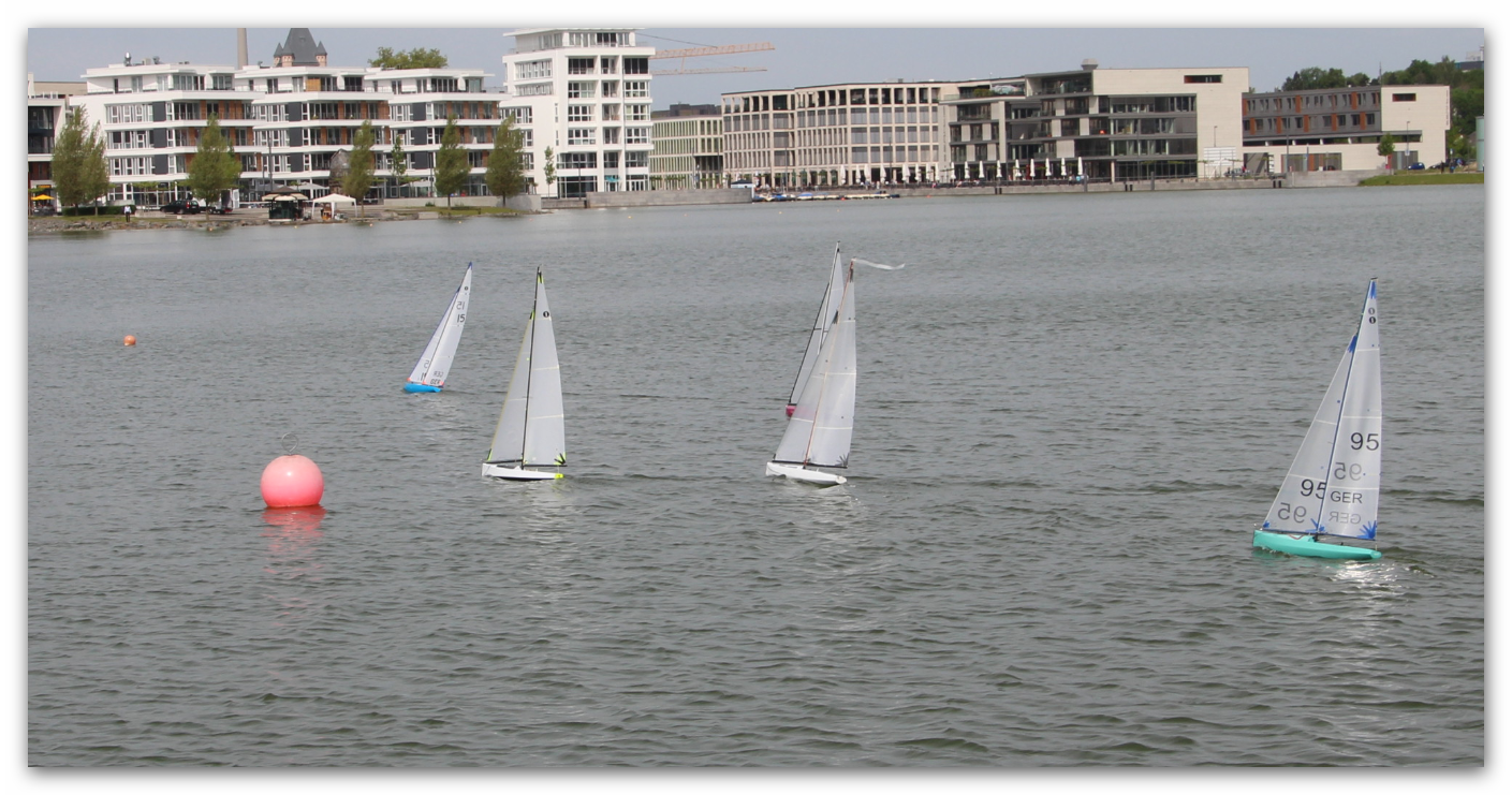 Insgesamt mit 8 Booten von uns und einem Nachwuchsmodellbauer der Schiffsmodellfreunde Schwerte e.V. der seinen Opti 1:10 in die Fluten schmiss. So ganz verstanden habe ich ja nicht wofür jetzt der Fahrregler in dem Boot nun sein sollte, aber dafür wissen wir jetzt, dass sein Boot ein Klassiker ist. :) ;)