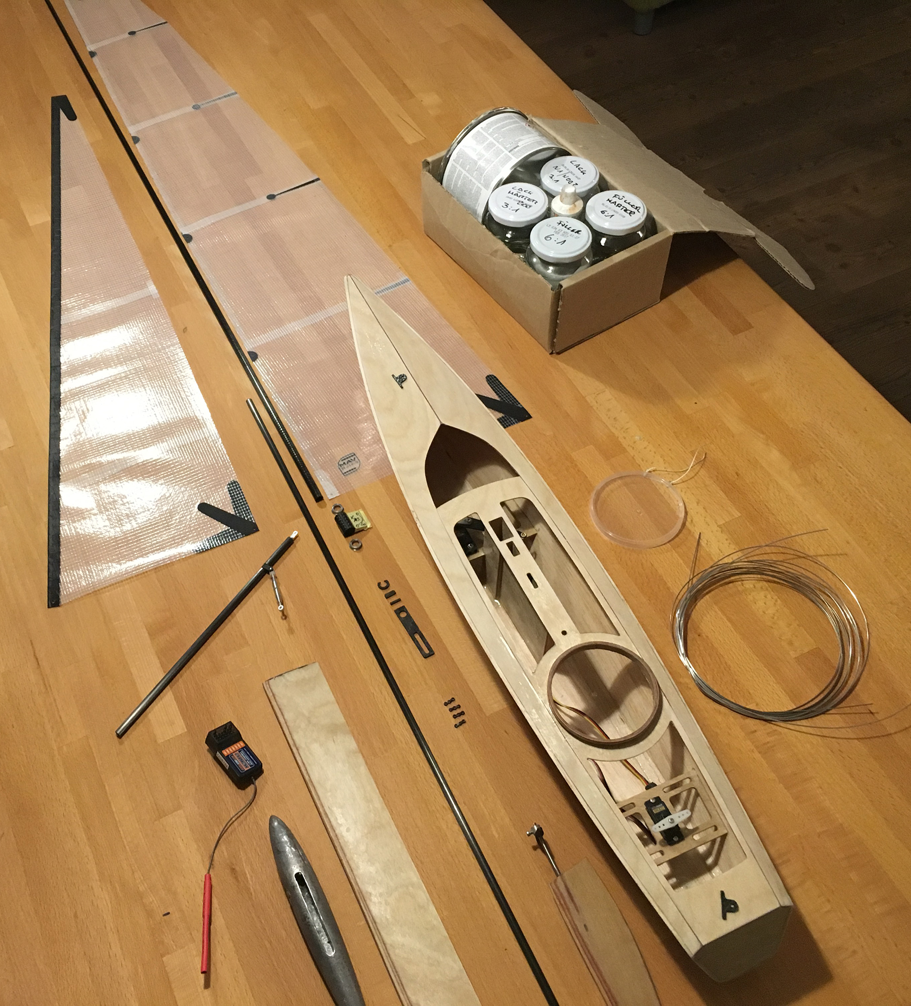 V2: einige Teile aus GFK (Ruder, Kiel, Schwertkasten) sowie Verbesserungen am Aufbau.