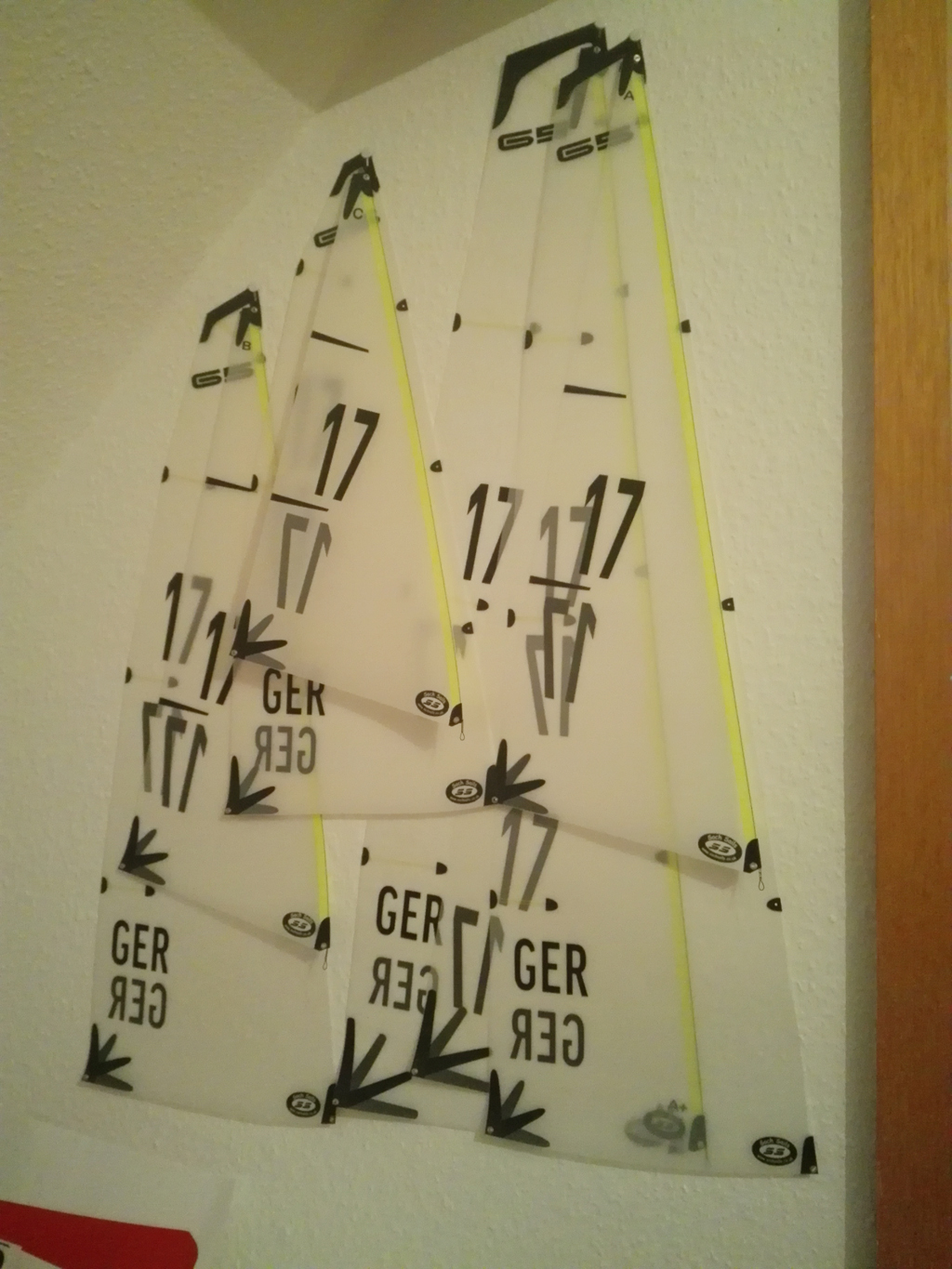 Bißchen ernüchternd ist die Tatsache, dass mein A-Satz von der Größe her noch Luft nach oben hätte. Zur Verteidigung des Segelmachers sei erwähnt, dass ich ja einen A-Satz für die One Design Klasse DF65 bestellt habe. Hier passt er jedensfalls. Nur für eine RG-Regatta könnte es ein wenig mehr sein.