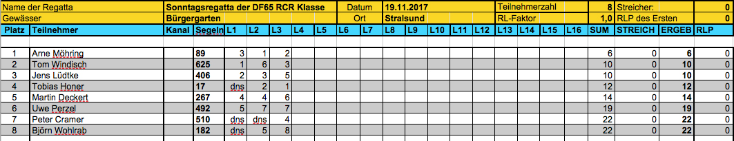 Wir sehen uns zur nächsten Regatta am Sonntag, dem 26.11.17 um 14 Uhr im Bürgergarten Stralsund.
