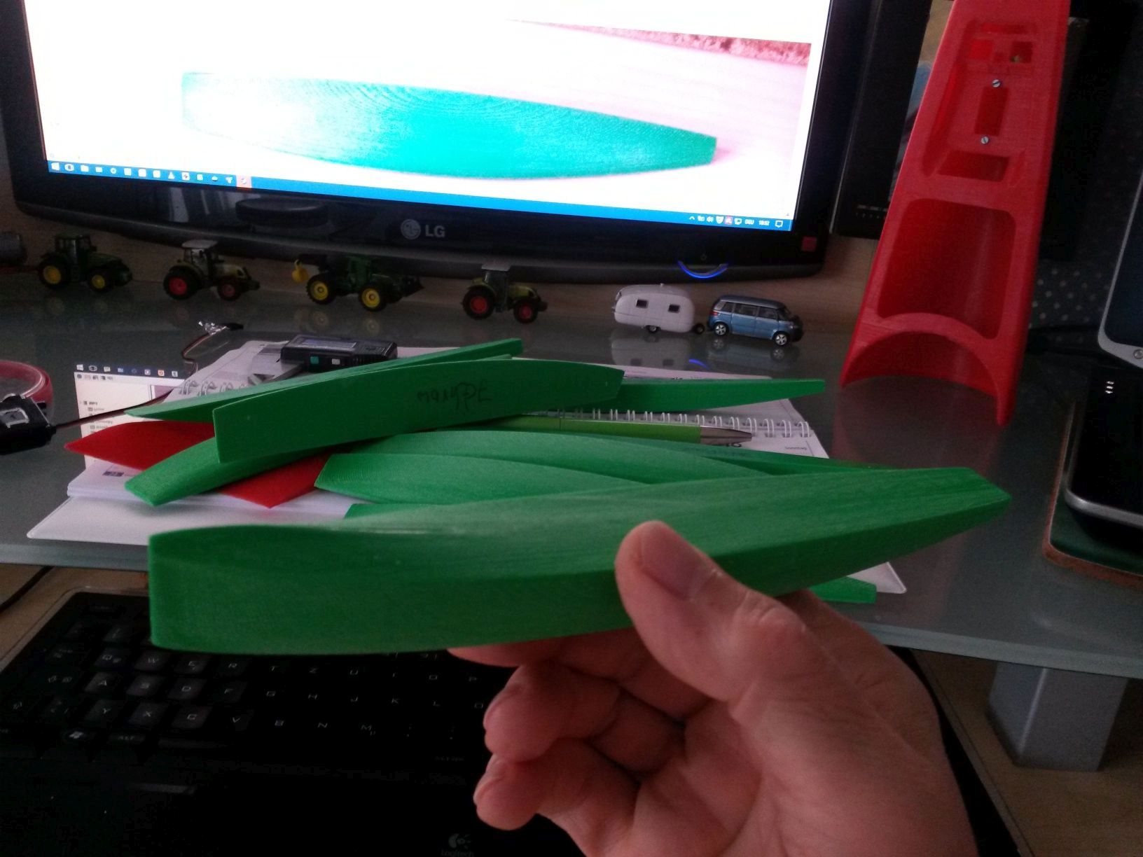 Der Servohalter fürs Ruder ist mit dem Ruderkoker gedruckt und wird als Einheit nur eingeschoben, mit irgendwas 3mm-rund fixiert, ausgerichtet und mit ein paar Tropfen Seku verklebt. Unten kommt dann noch nen Tröpfchen Harz dazu.