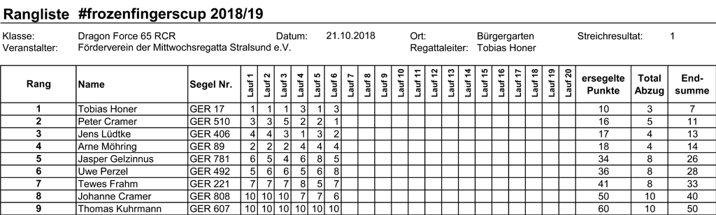 Stralsunder Sonntagsregatta #frozenfingerscup im Winterhalbjahr 2018/19 der Dragon Force 65 Klasse