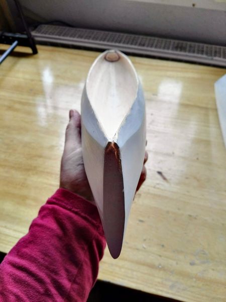 Die Schale ließ sich gut ablösen, es brauchte aber schon etwas Kraft in den Fingerspitzen. An einer Stelle knickte dabei die Balsarumpfkante etwas nach außen, zum Glück ohne bleibenden Schaden.