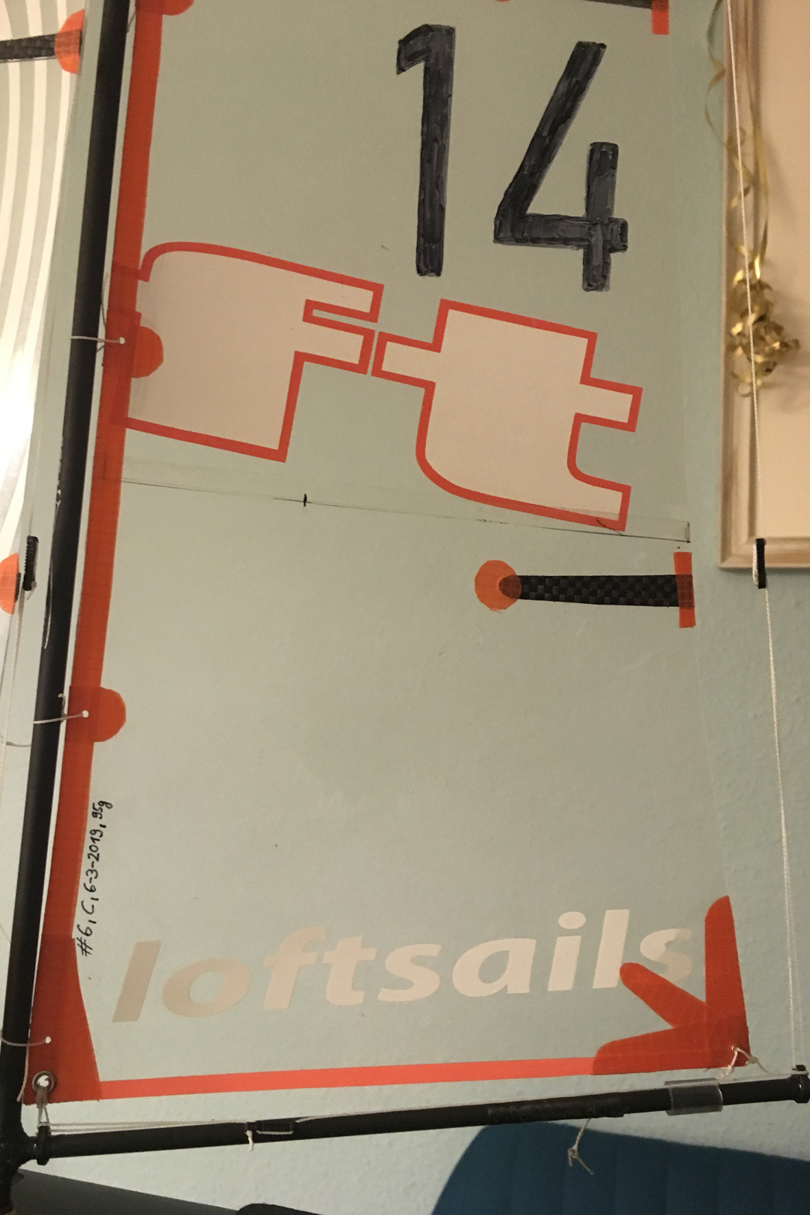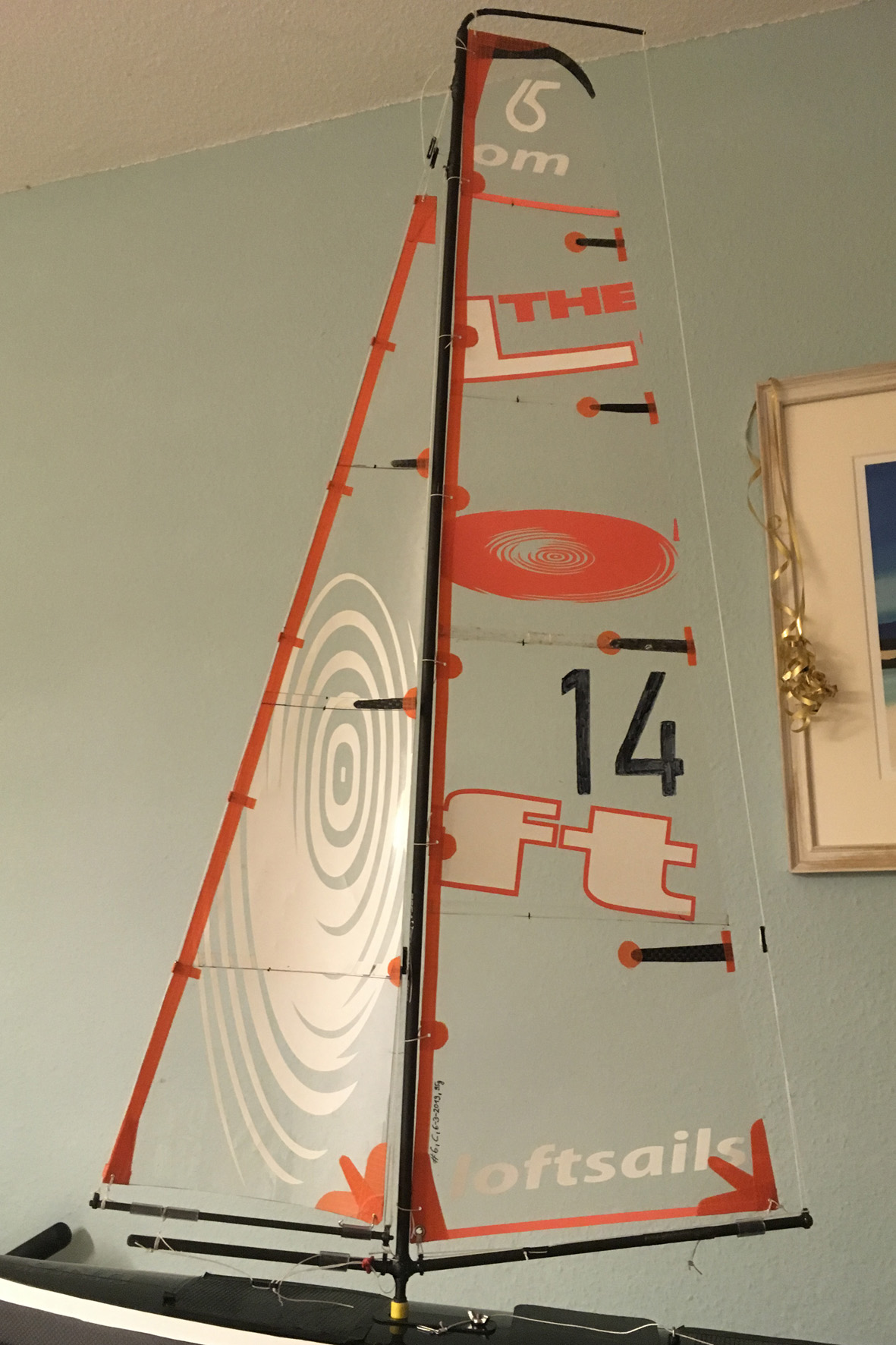Anbei ein paar Fotos trocken und in Aktion. Ich fand es optisch ganz in Ordnung ... dem Trimm habe ich etwas mehr Twist gegeben und in die Fockschot etwas mehr lose im Vergleich zum A und B Rigg.
