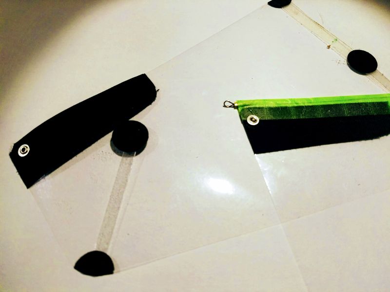 Ich denke, es ist eine gute Idee, erst einmal ein Probesegel mit billigem Material zu bauen. So kann man sich in die Arbeitsabläufe einzufuchsen und versenkt im Zweifel nicht gleich teure Mylarfolie. Ich lernte dabei schnell noch ein paar kleine Tricks, damit alles besser von der Hand geht.