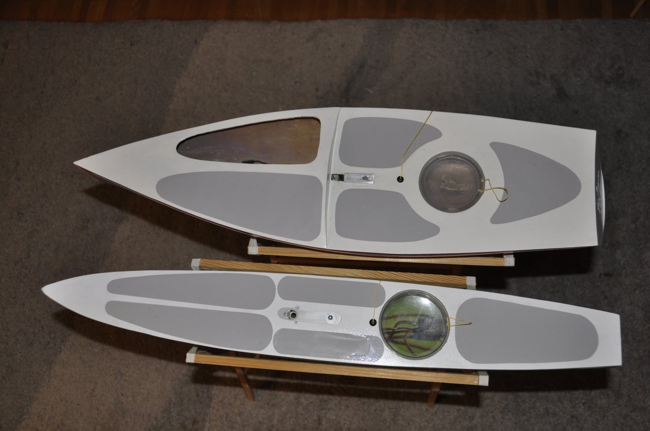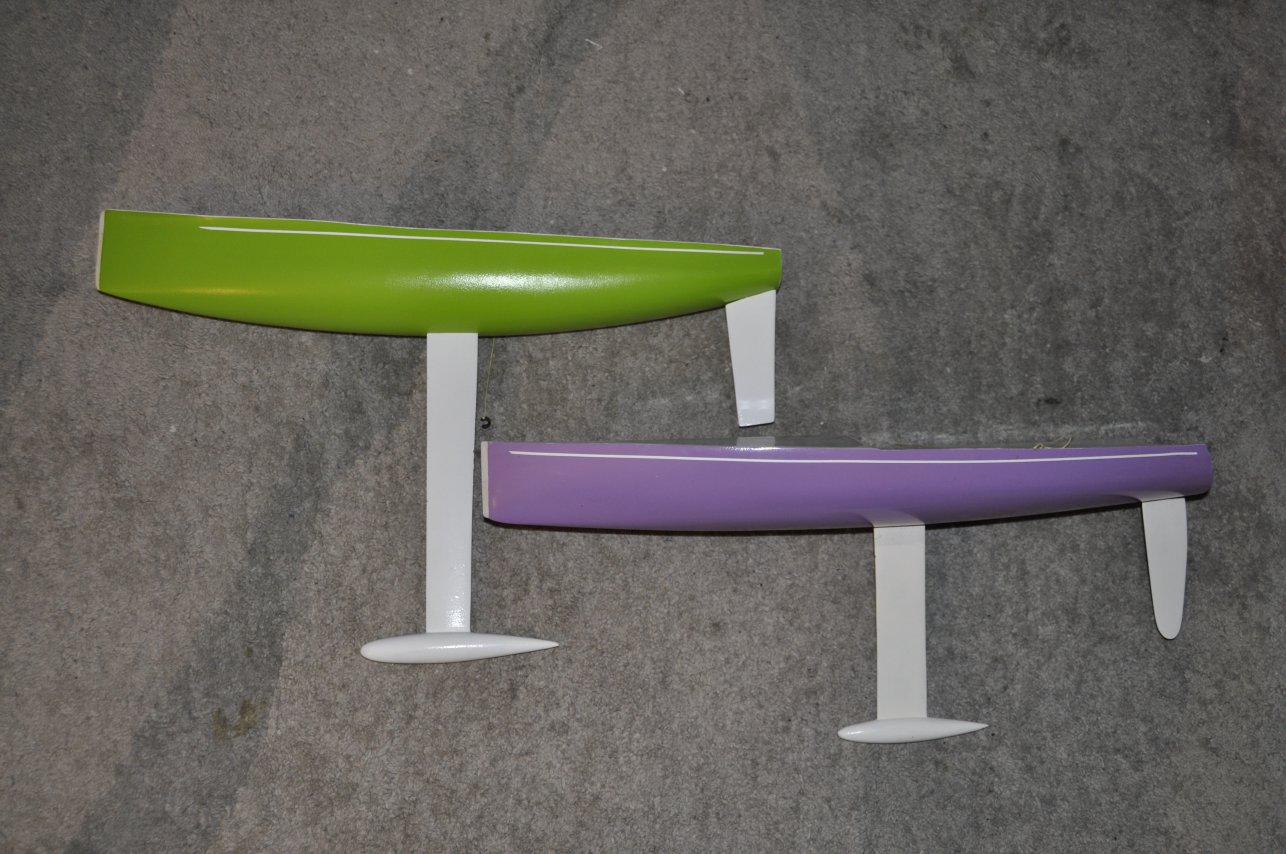 Nach meinem ersten RG65-Versuch, einer tollen Viperfish, versuchte ich mich in zwei Eigenbauten. Basis war ein Originalriss. Breit, dabei wenig Tiefgang , das war mein Vorhaben. Beim ersten Entwurf hielt ich mich an den Plan. Das Ding wurde mächtig, die Version 2 "Tibou" sieht deutlich sportlicher aus.Von beiden Versionen gibts in diesem Forum Spuren. Ich lege zwei Fotos bei. Die Tibou im Vergleich mit der Atom4 von Mark Dicks. Bei der Tibou überzeugen mich das kurze Schwert mit extrem wenig Ballast, ca. 250g. Das Schwert habe ich extrem weit hinten platziert. Die Kombination mit grosser Breite und kurzem Schwert ergen schlicht keine Stecker und bei stärkerem Wind kommt das Ding ins Gleiten, die Amwind-Eigenschaften lassen etwas zu wünschen übrig. Die Rumpfbreite beträgt 19cm und liegt damit über den IOM-Designs. Wie erwähnt, Plan unter den Fotokopierer, Linien gezogen und gedrückt, bis die Optik passte, das Resultat gefällt mir immer noch, einzig das Schwert müsste etwas verlängert werden, mit 17cm doch eher bescheiden. der längere Hebel würde die Stabilität sicher verbessern. Es würde mich freuen, wieder vermehrt eigene und mutige Entwürfe hier im Forum zu entdecken. Bei Gelegenheit werde ich die gemachten erfahrungen jedenfalls in einer Version III verewigen..