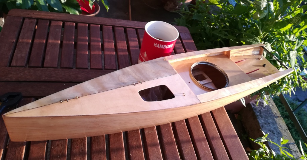 Hier und da ist mal ein kleines Stück 6mm Sperrholz abgesplittert und das Material wurde knapp, musste das Deck stückeln. Auch meine Energie erlahmt jetzt ein wenig, will das Boot nur noch fertig bekommen.