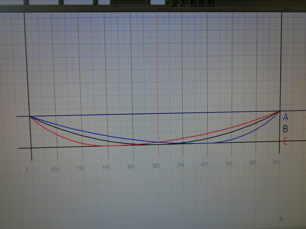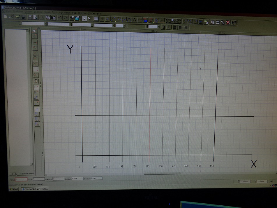 Wie zu sehen ist habe ich auch alle 65mm eine senkrechte Linie für die Spanten gemacht.