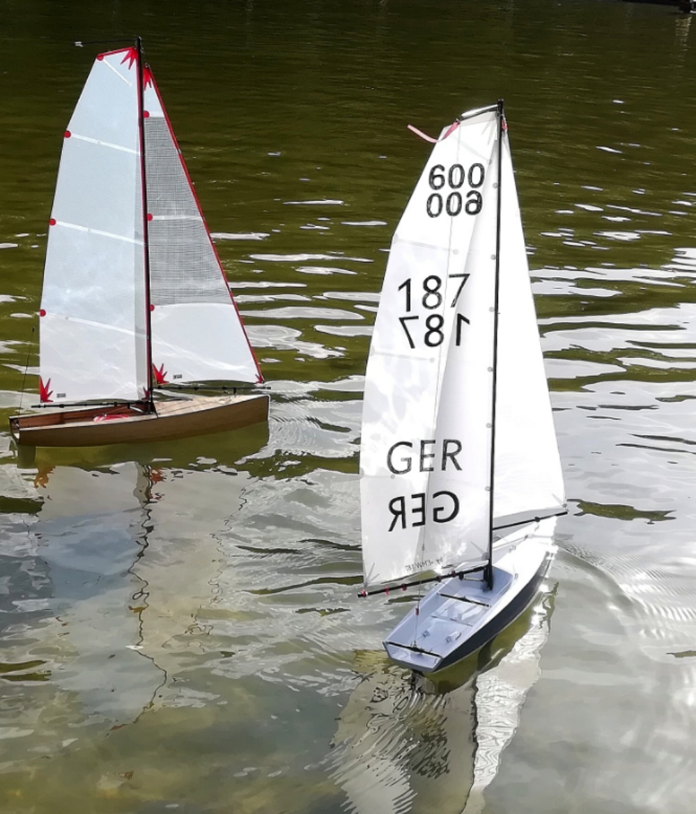 Erwin brachte sein wirklich in jeder Hinsicht perfekt gebautes Gfk Boot mit und wir konnten im Modellbecken zusammen mit einigen DF65 segeln..