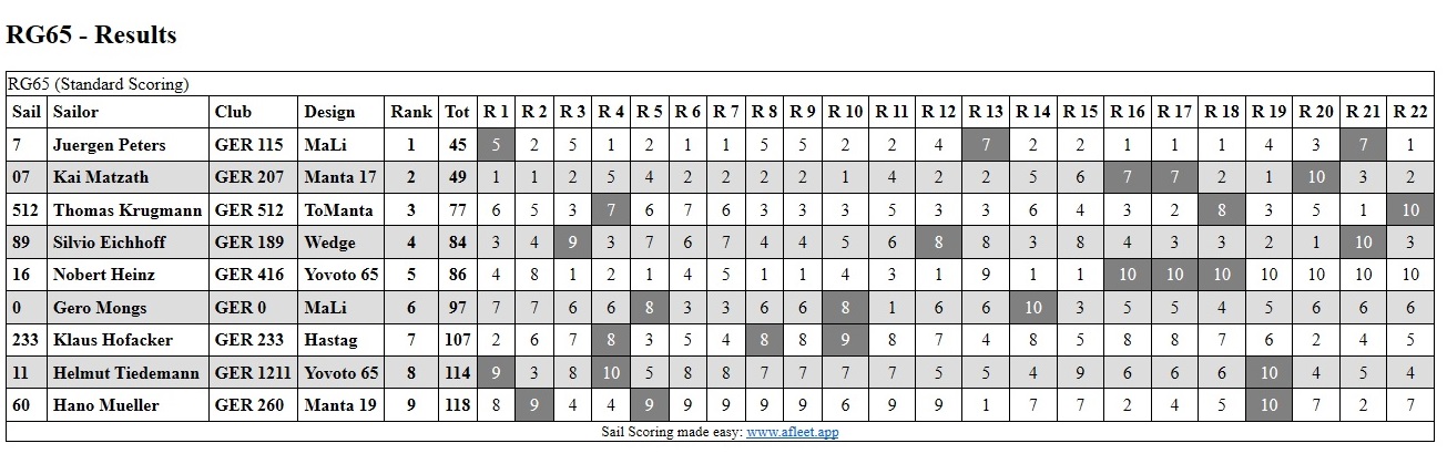 Nach 22 gesegelten Läufen stand dann schließlich Yogi vor Kai als Sieger fest. Thomas konnte ganz unauffällig auf den dritten Platz segeln.