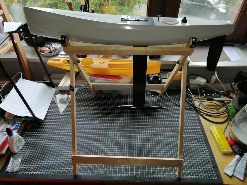 Mein erster Bootsständer war wegen der durchgehenden Achse nicht so optimal. Das Boot konnte, wenn nötig, nicht im Wind pendeln. Dafür gabs berechtigte Kritik. Jetzt also #2, der hoffentlich besser ist.