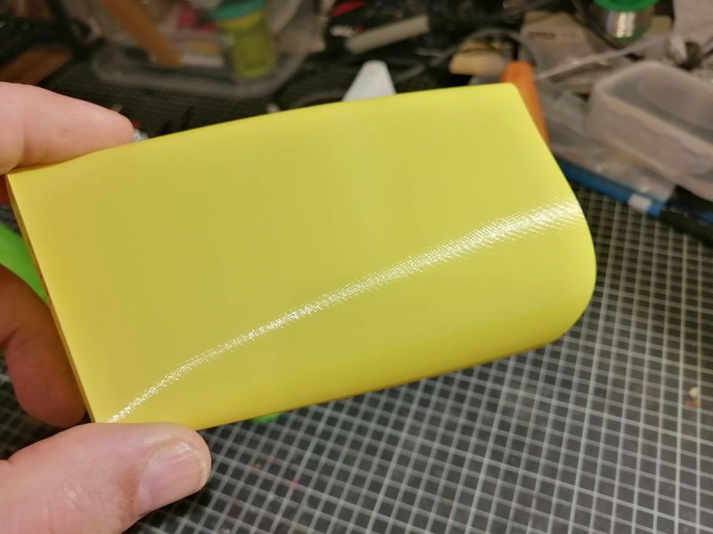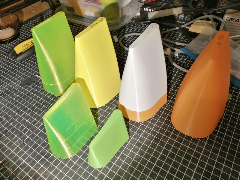 Fazit: Halbtransparentes PLA weist offenkundig andere Eigenschaften als das normale auf. Es scheint spröder zu sein und auch eine geringere Layerhaftung zu haben. Schade, meine Absicht, einen halbtransparenten Rumpf zu drucken, habe ich beerdigt. Ich habs gerne so solide wie möglich. Für meinen Rumpf werde ich das Redline-PLA verwenden. Mechanisch und optisch schien es für mich das beste PLA zu sein.