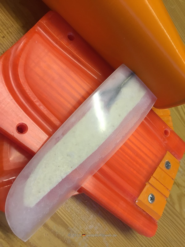 Inzwischen hab ich mit einigem Harzrest ein Ruder zum testen laminiert.