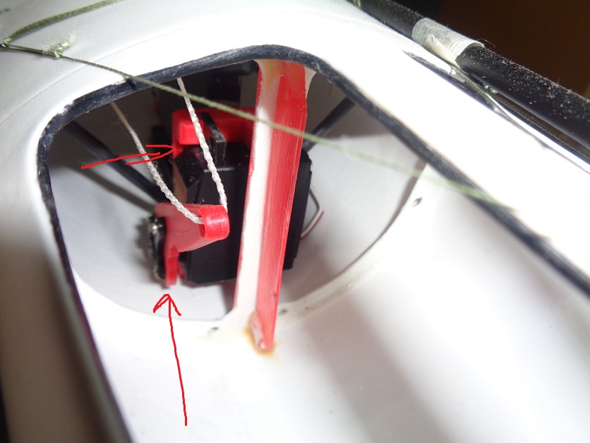 Das Schwarze ganz am Ende ist der Versrärkungsring für das Ruderservo.