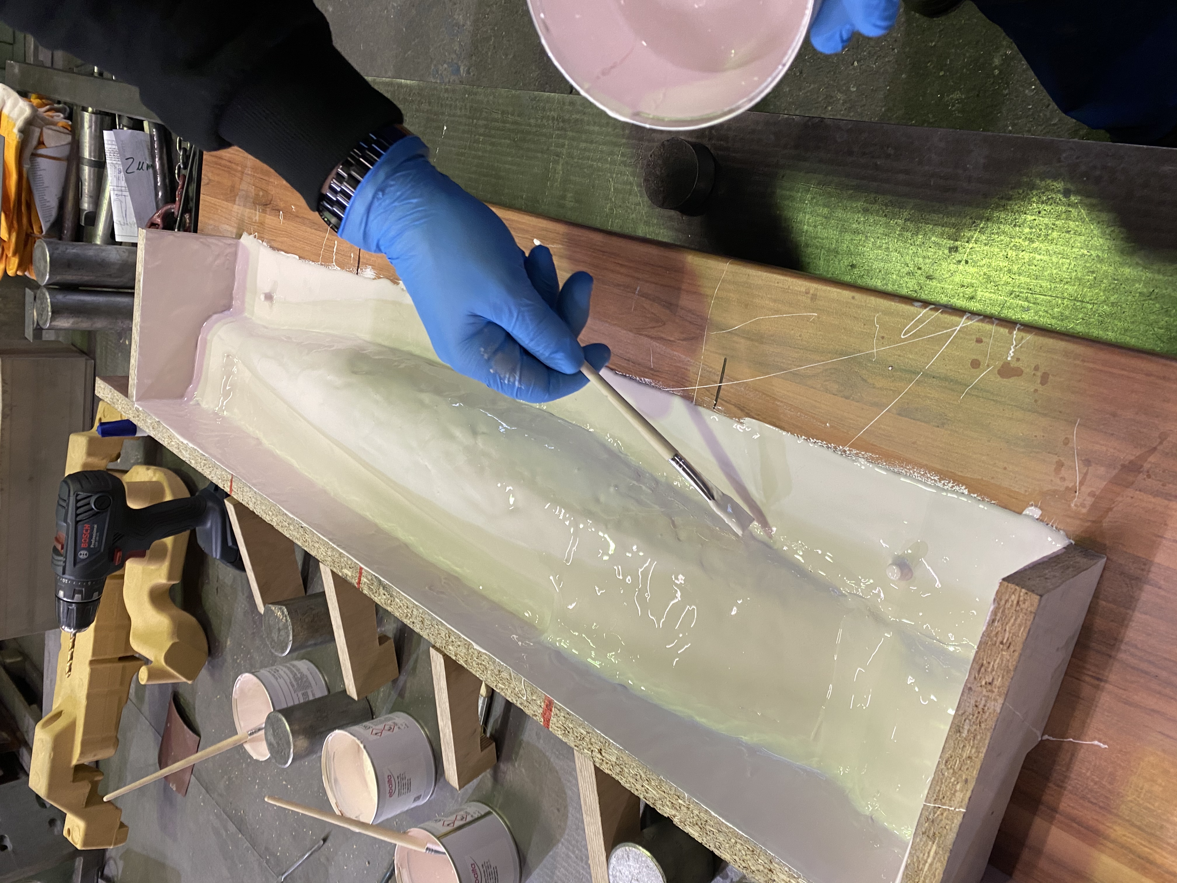 Dann wurde Trennwachs und Trennmittel aufgetragen und das Oberflächenharz konnte aufgetragen werden!