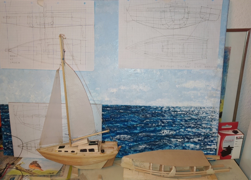 Soll irgendwann, wenn fertig im Modellbootbecken mit anderen diversen Funktionsmodellen, gemütlich durch die Miniwellen, segeln,(treiben).