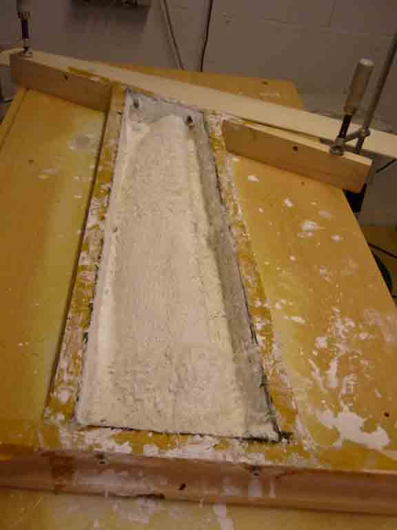 Egal die Form müsste recht aufwändig repariert werden, evtl. geht es sogar schneller einfach ne neue zu bauen.