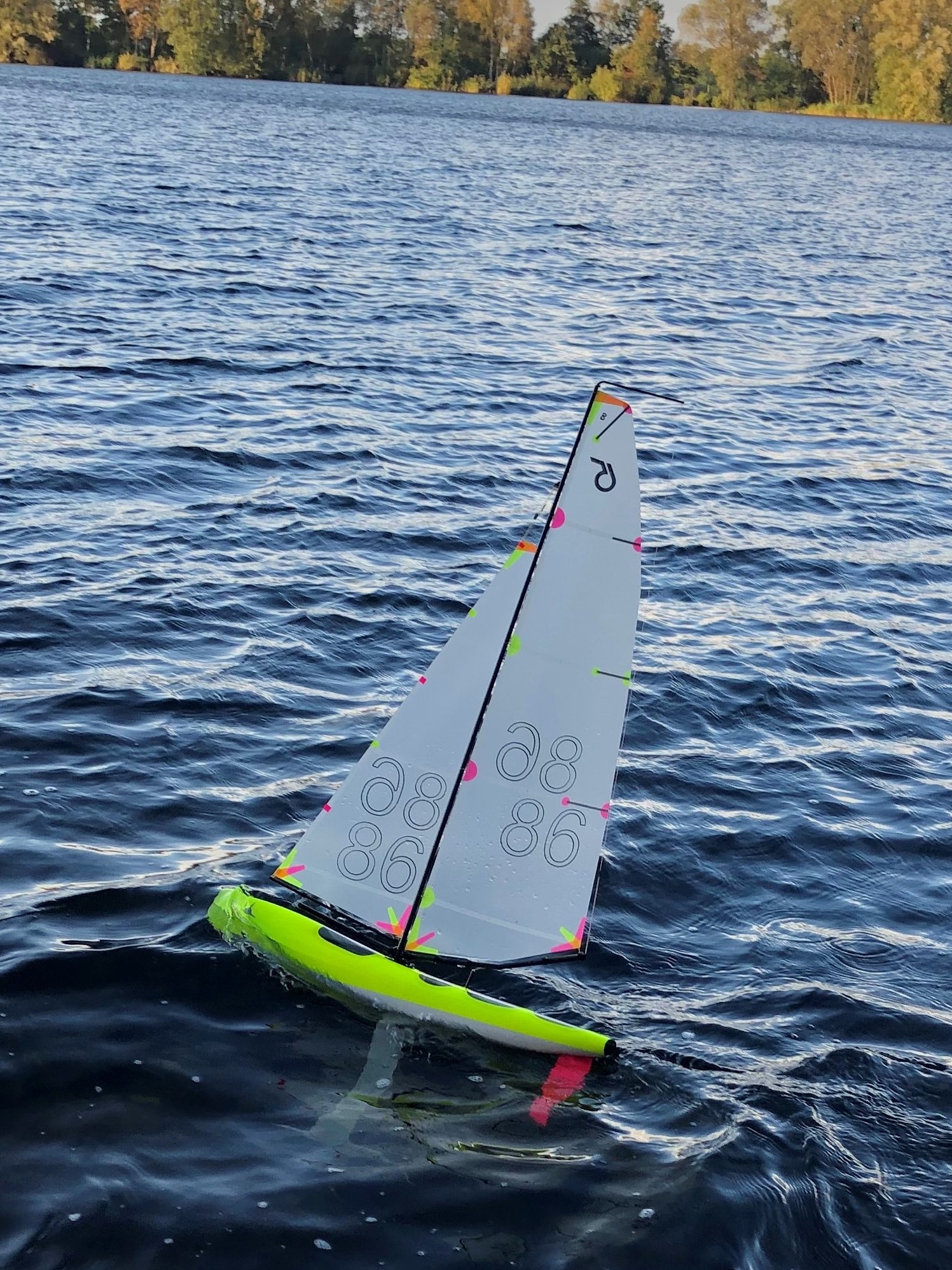 es gibt was neues aus meinem Designbüro und Modellbauwerft. Die Orka MKII hatte vor wenigen Tagen Stapellauf und war heute zum ersten mal mit komplettem Farbekleid und B-Rig unterwegs. Ob es eine Evolutionsstufe gegenüber meiner Orka (https://forum.rg-65.de/viewtopic.php?f=24&t=2796#p28274) ist kann ich bisher noch nicht sagen. Sie segelt recht angenehme und unauffällig. Der Rest muss sich auf Regatten zeigen ...