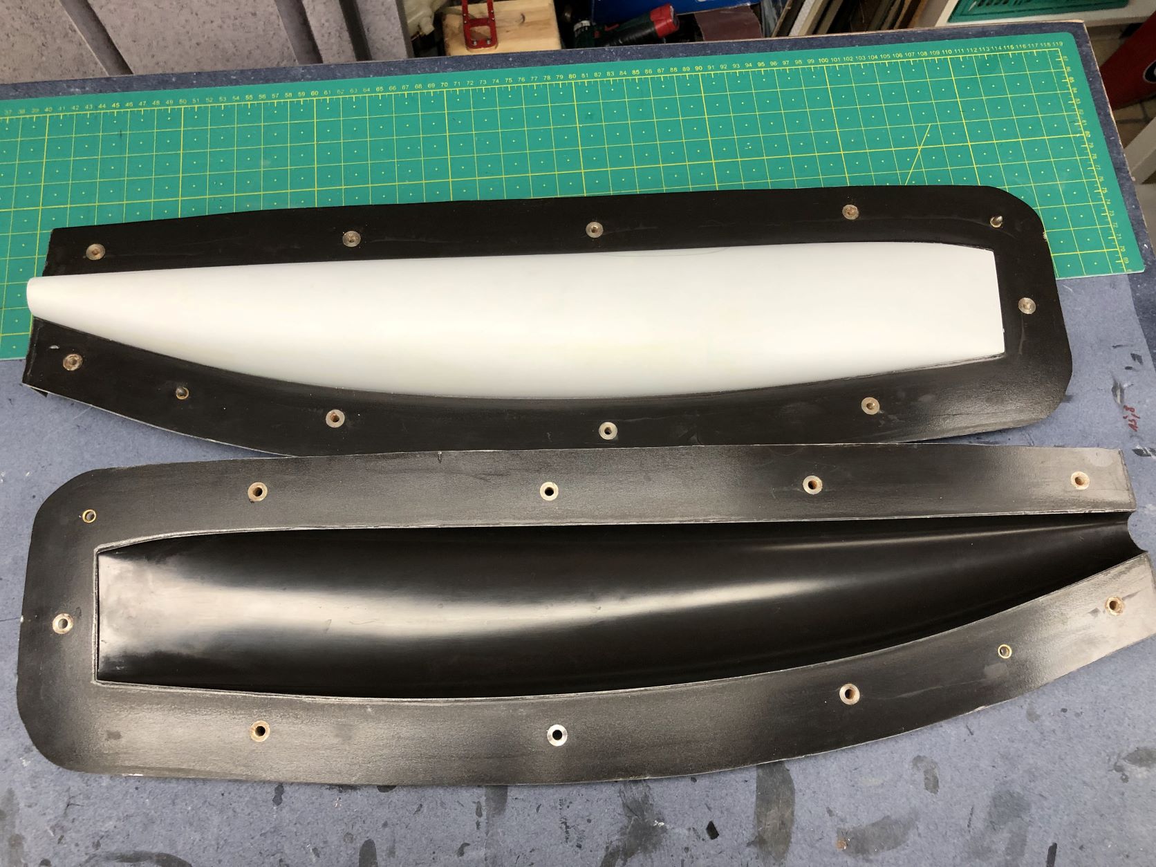 da die Sachen Mühltonne einfach zu Schade sind, gebe ich meine Negativform für meine Orka inkl. Urmodell ab. Form ist in guten Zustand wie man auf den Bilder sehen kann. Dabei ist ferner eine kleine Form zum laminieren einer entsprechenden Mastplatte zum Sicher bzw. verschieben des Mastes, welche genau die Decksrundung hat.