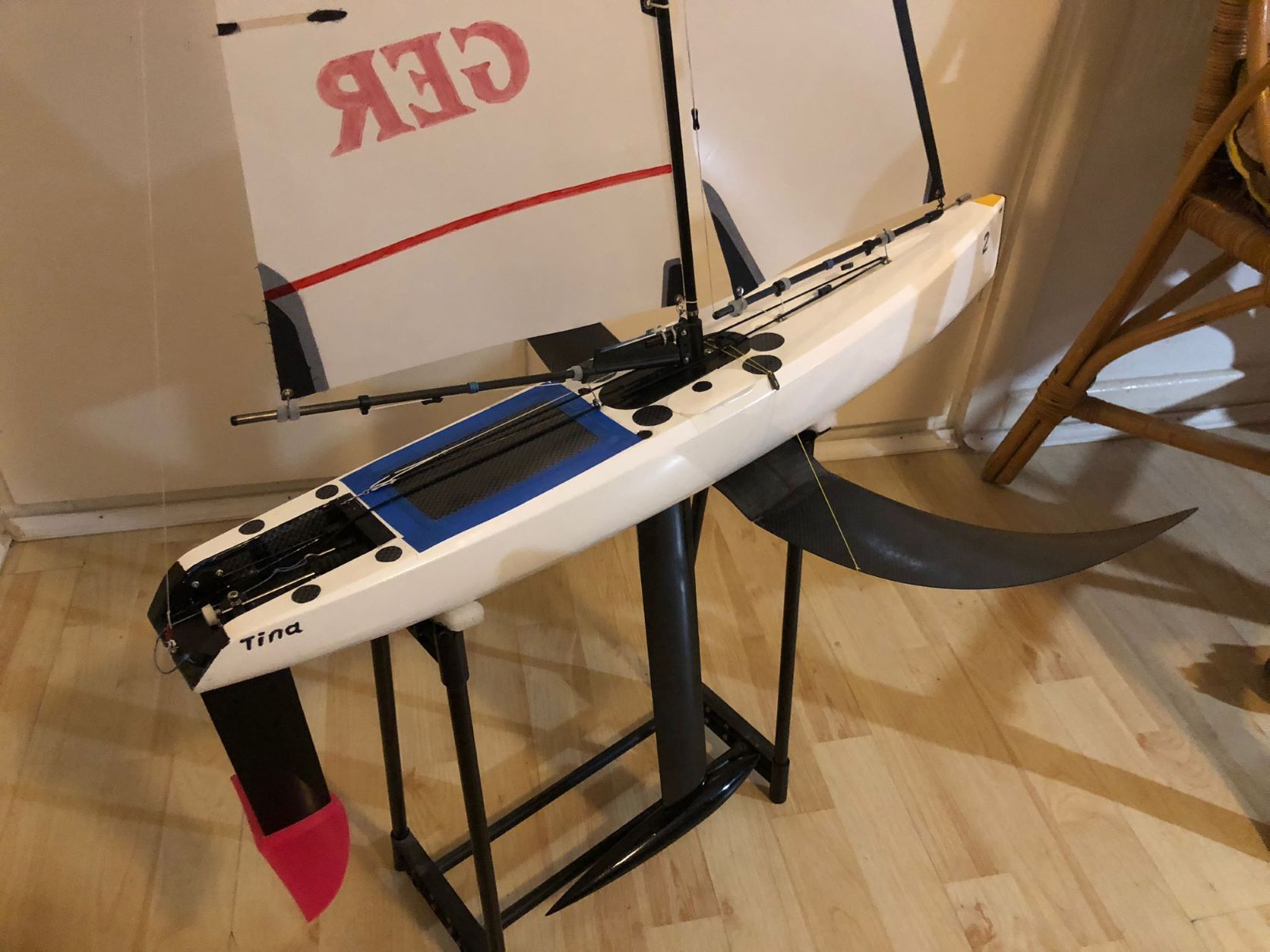 Wieder zu Hause wurde dann erst einmal die Waage und Gliedermaßstab raus geholt um sich ein paar Hausnummer zu holen. Resultat segelfertig mit Foil: