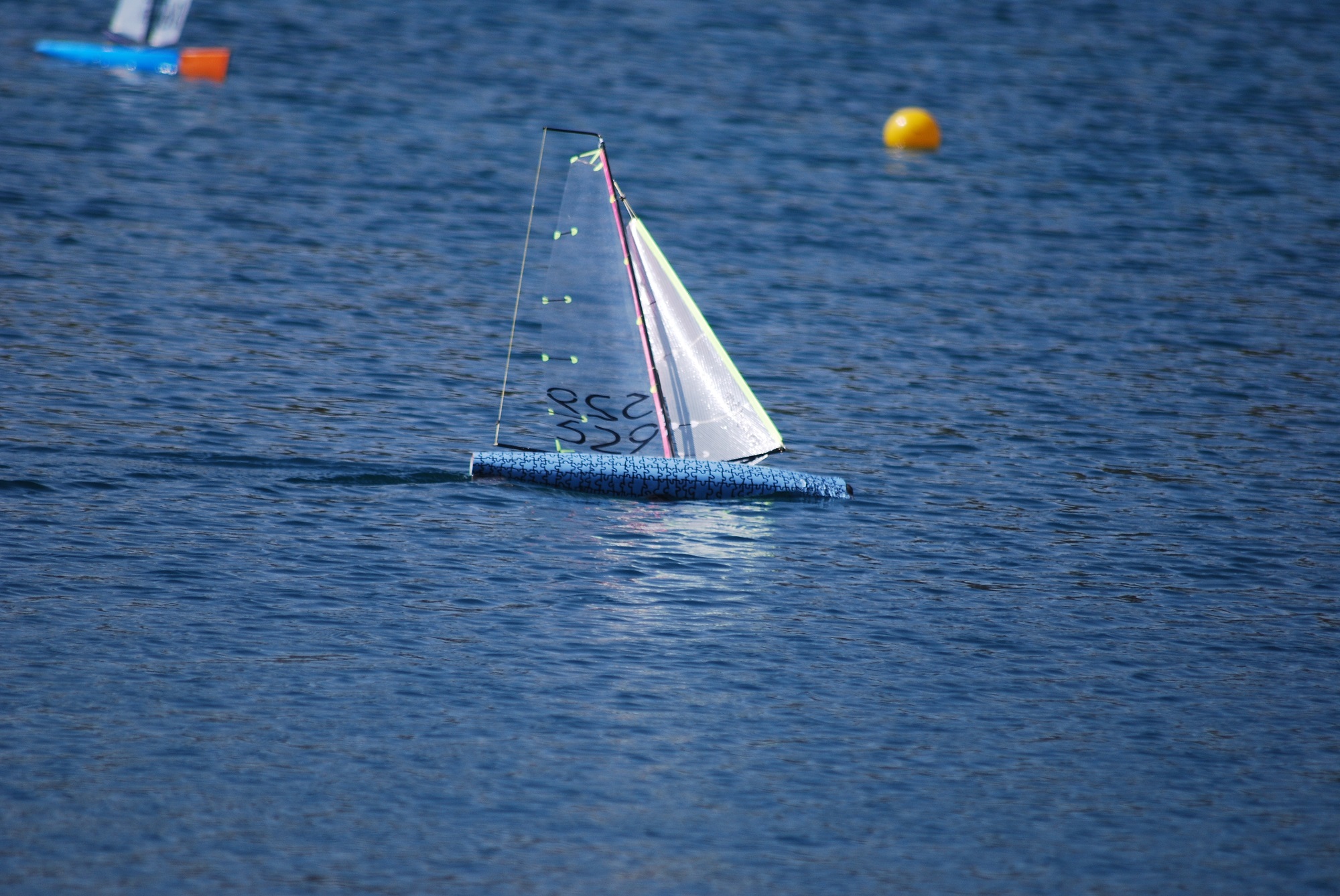 Das Boot liegt perfekt im Wasser! Gewicht Segelfertig 997g mit 570 Blei.