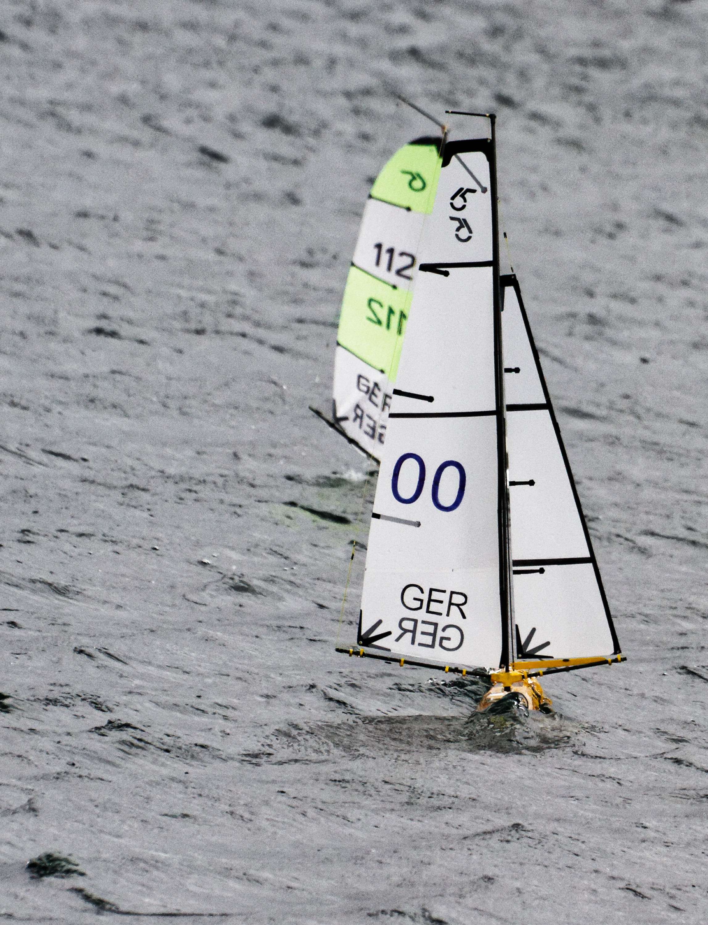 Nach weiteren Versuchen bekam ich einen Prototyp der noch ca 30gr zu schwer war, der aber durchaus schon das Potential zeigte. Daraufhin wurde die Vorserie aufgelegt. Der Bootsrumpf ist aus GFK und die technischen Teile aus dem og. Sinterverfahren. Das Boot erreicht damit ein Gewicht unter 200 gr. und das obwohl auch die Beschläge für ein Standardrigg eingebaut wurden.