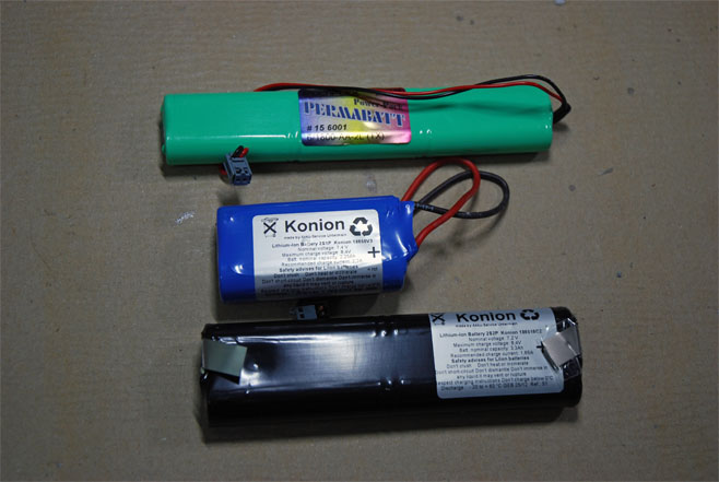 Nach längerer Suche habe ich mich entschlossen, auf Konions (Lithium-Ionen-Zellen) umzurüsten. Die haben die gleiche Nennspannung wie NiMHs (7,2V), praktisch keine Selbstentladung und sind ähnlich robust wie LiFePos. Außerdem meint die Fachwelt, dass Li-Ionen-Akkus nicht (oder nur selten) balanziert werden müssen.