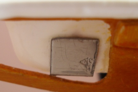 Am Boot ist innen ein Blechstreifen zur Fixierung des Magneten angeklebt. Dadurch wird er vom Magneten zur Bordwand gezogen und kann sich nicht so leicht lösen. Außen angebracht wäre dies bei einem starken Magneten bei schlechter Klebung des Fe-Blechs meiner Meinung nach evtl. möglich. Siehe Bild 2