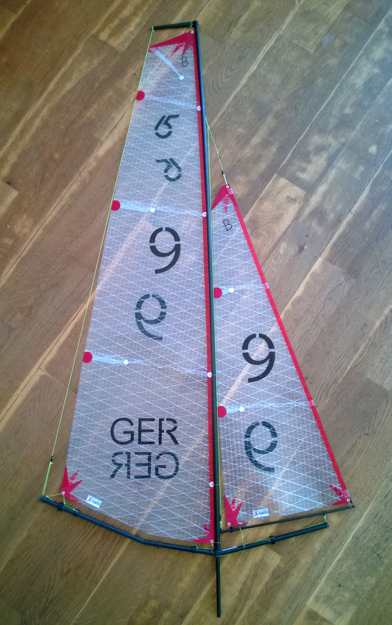 Die Finne besteht aus 120 g UD Gelege und wiegt 35g, das Kielgewicht besteht aus Blei und wiegt 550 g.