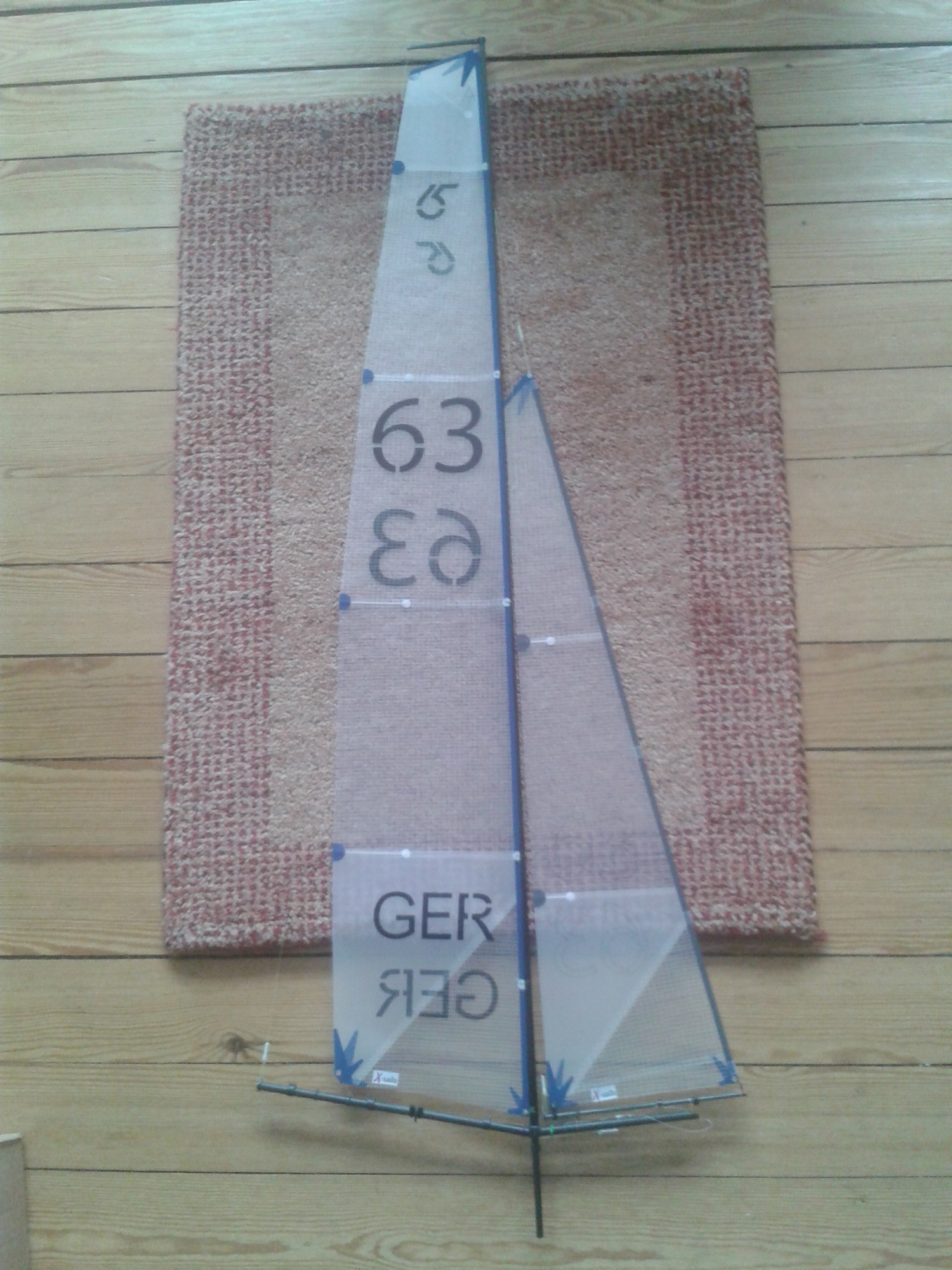 Verkaufe fast neues A+ Rigg (110cm) von X-Sails aus Gittermylar-Folien-Mix. Habe es lediglich auf der Deutschen Meisterschaft in Leipzig ab und zu gefahren. Der Zustand ist dementsprechend gut, da es ansonsten in einer Segeltasche transportiert wurde. Die Segelnummern mit Edding aufgemalt, können also rückstandslos entfernt werden.