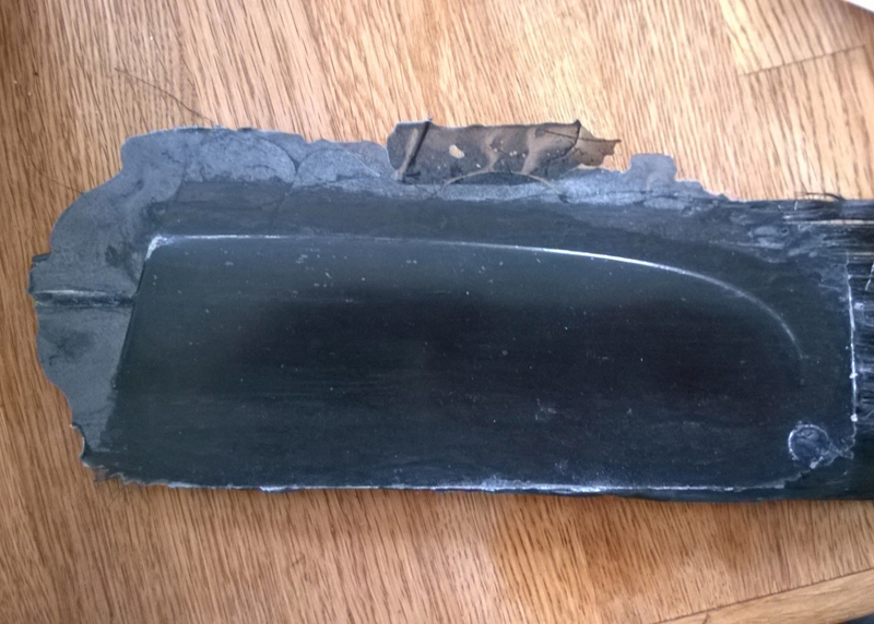 Das Ruderblatt sieht ein wenig benutzt aus hat aber ein sauberes Profil (kommt aus einer gefrästen Form) und ist heil.