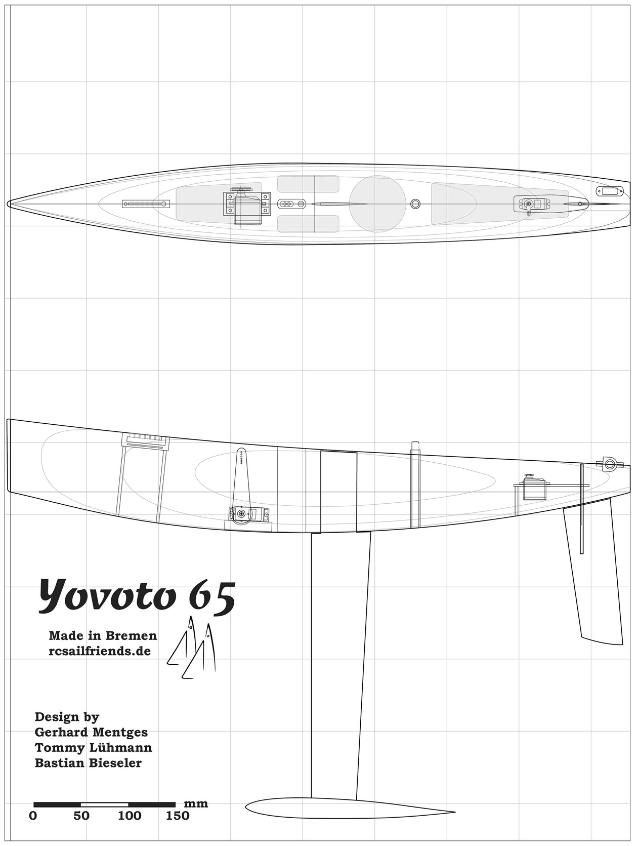 Kiel und Rudder sind aus Carbon und der Kielbombe mit ca. 620g aus Blei mit messing core . 2 Servos fest installiert