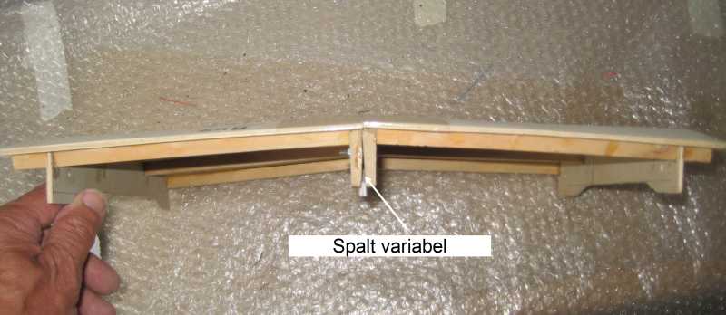 a. Die Schablone ist zweiteilig und kann in der Mitte etwas angehoben werden (Pappzwischenlagen verringern), um tiefere Profile zu erzeugen.