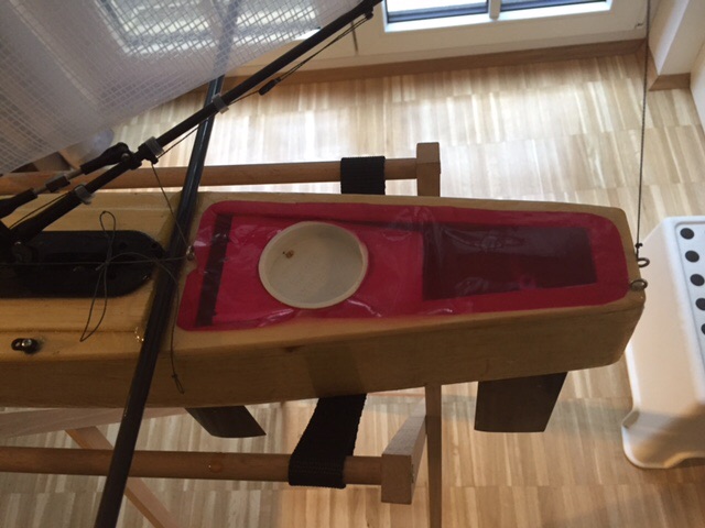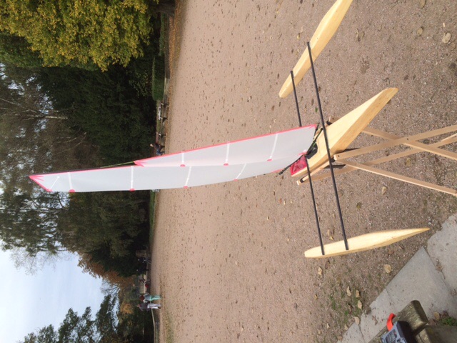 Gebaut wurde der Tri aus Balsaholz ,grundiert und mit Bootslack Lackiert
